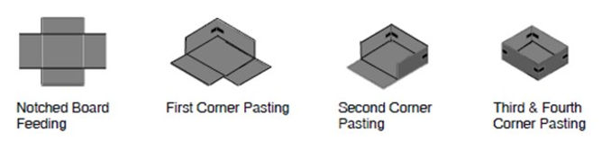 The Single Corner Taping machine allows the user to apply thermal tapes on the corners of the notched grey board. The corner pasting process plays a vital role in the rigid box forming process, as the quality of corner pasting determines the quality of the final product to a very large extent.